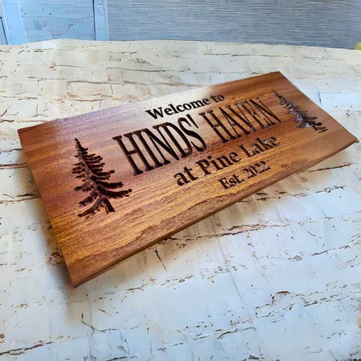 We create engraved, carved, painted, and 3D wooden signs, suitable for both indoor and outdoor spaces.